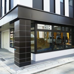 外観は報道機関としての透明性・誠実性が感じられるデザインとした。